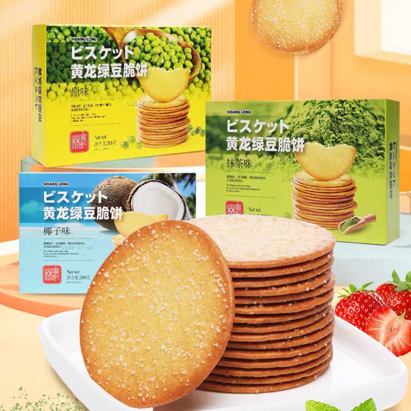 臨期特價 黃龍綠豆脆餅原味/椰子味甜脆薄餅休閑零食下午茶208g