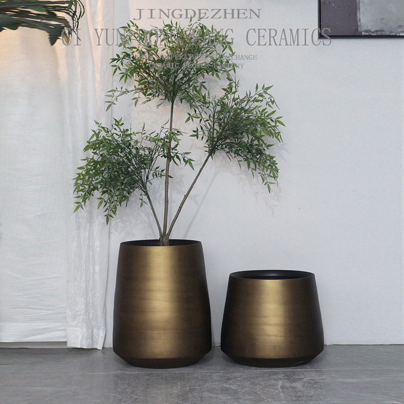 景德鎮陶瓷花盆北歐古銅色客廳室內綠植裝飾擺件大V號落地花瓶