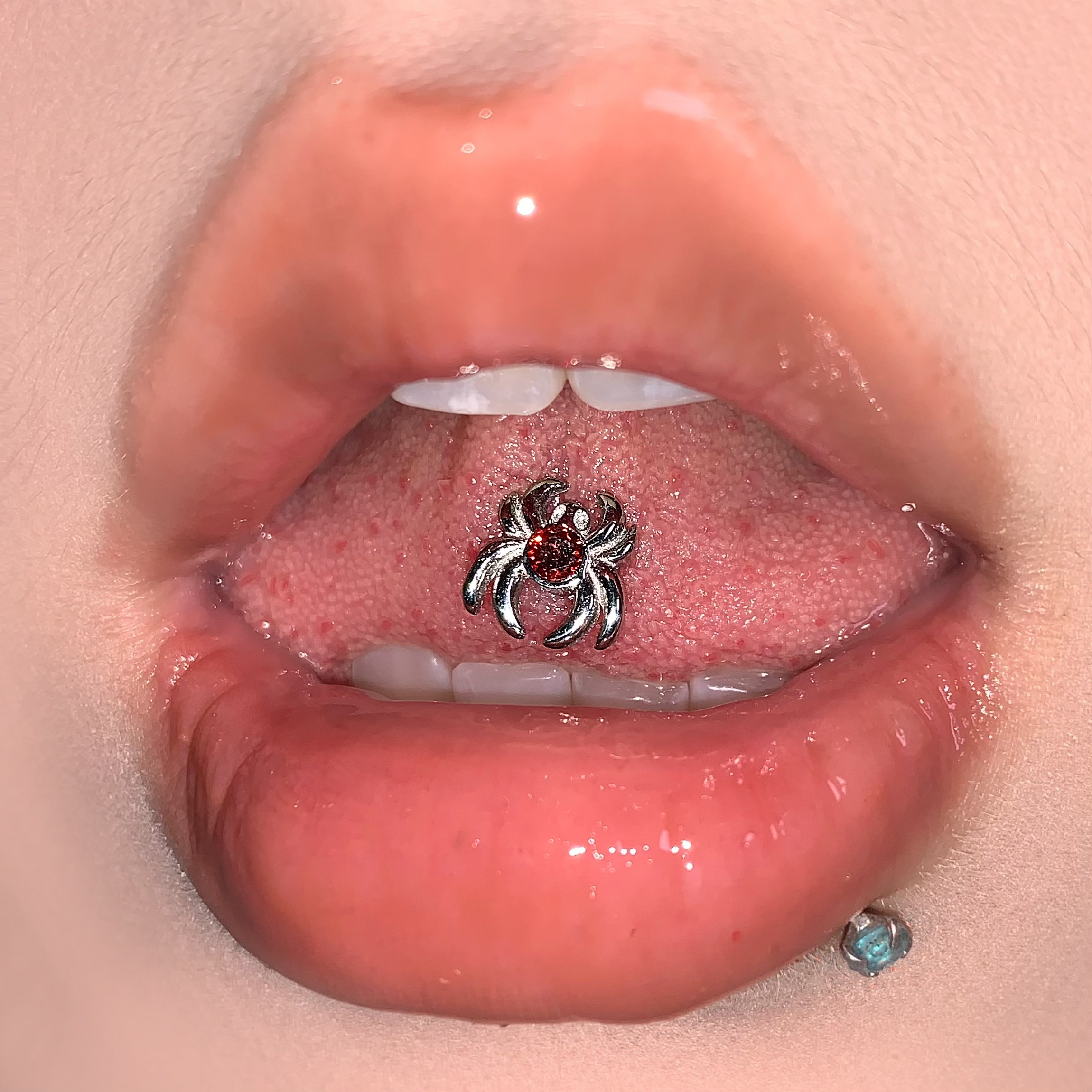 Raccon浣熊 紅鉆蜘蛛 鈦鋼舌釘甜酷歐美辣妹外螺紋朋克穿刺飾品
