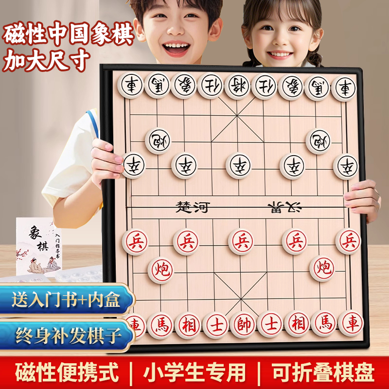 象棋小學生中國兒童磁力像棋帶棋盤磁性橡棋磁吸便攜式可折疊實木