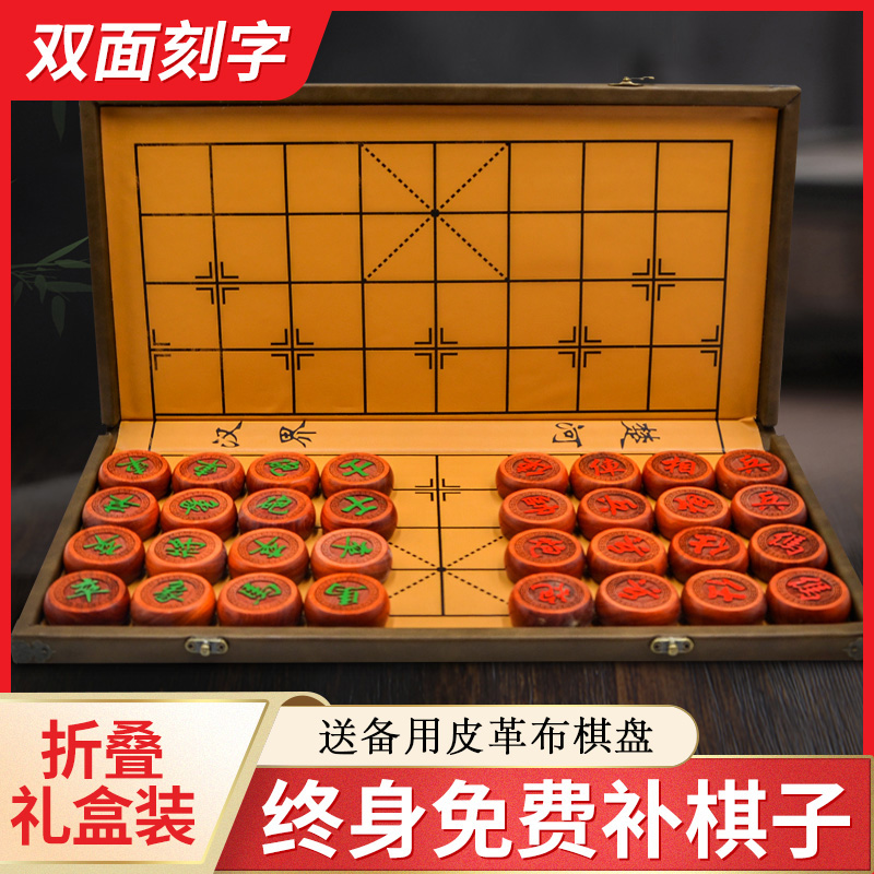 中國象棋實木兒h童大號成人高檔小學生紅木像棋帶折疊棋盤送禮套