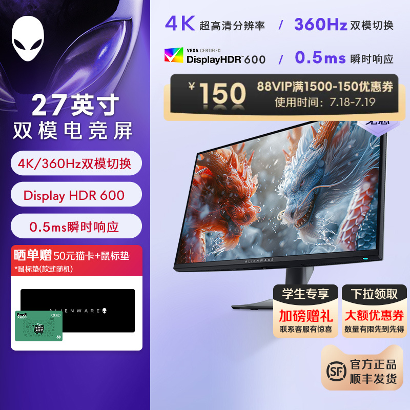 【政府補貼15%】外星人(Alienware)AW2725QF 27英寸電競顯示器