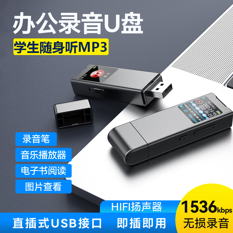 U盤式錄音筆轉文字降噪超長續航上課mp3隨身聽錄音神器音樂播放器