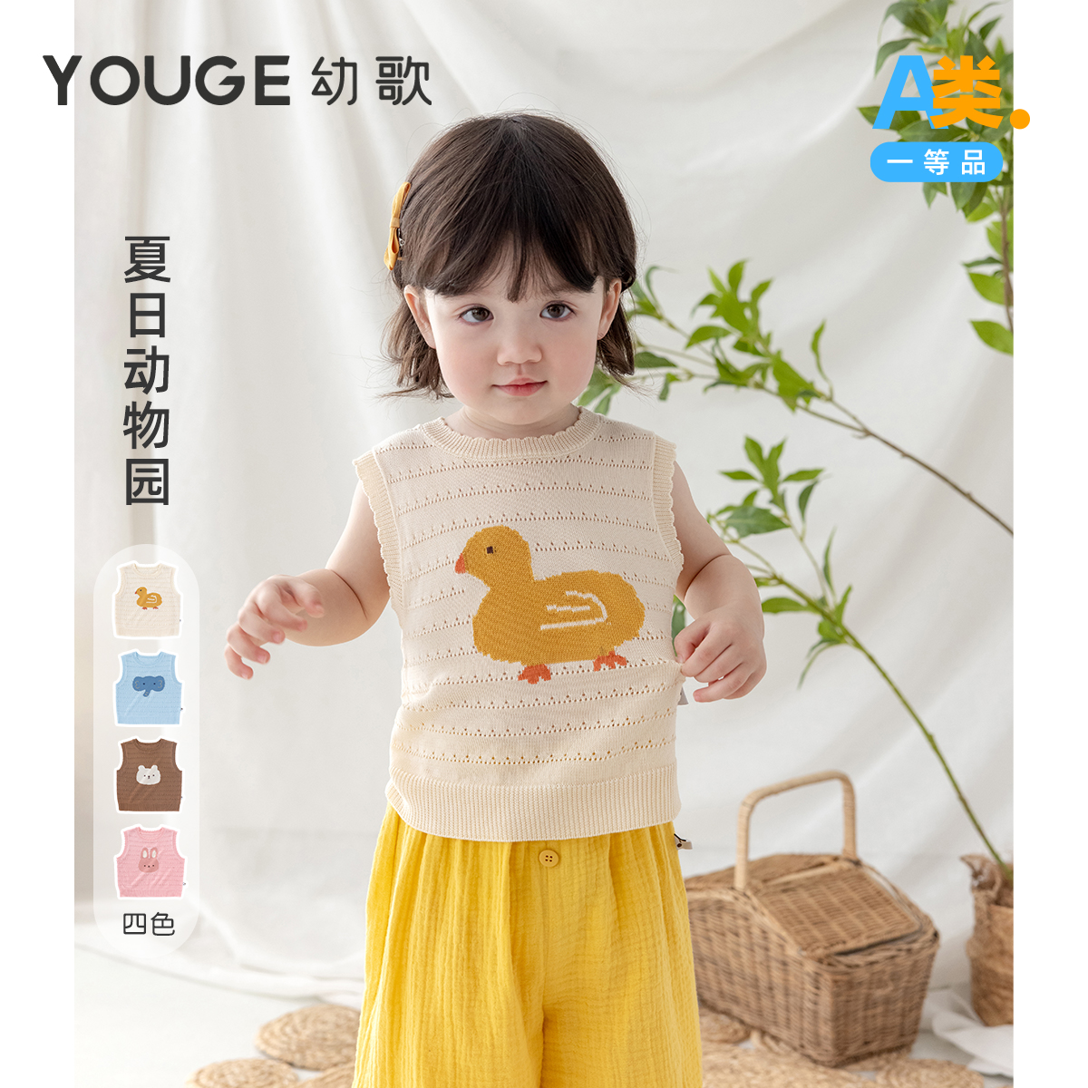 YOUGE幼歌 夏季新款嬰幼兒可愛小兔冰絲清涼吊帶時尚休閑寶寶內搭