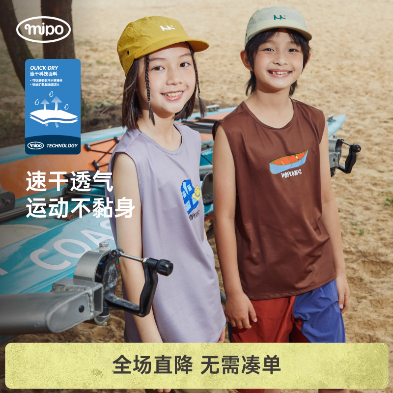 mipo速干網眼兒童背心夏男女童戶外運動海邊吸濕排汗透氣無袖T恤