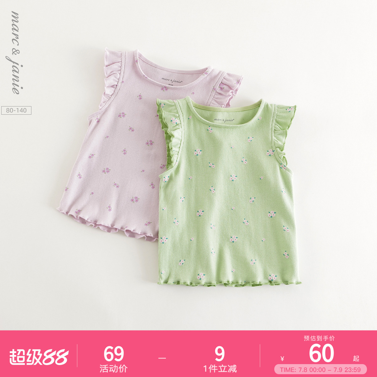 馬克珍妮女童滿底碎花花邊背心 寶寶無袖T恤2025年夏裝新款550750