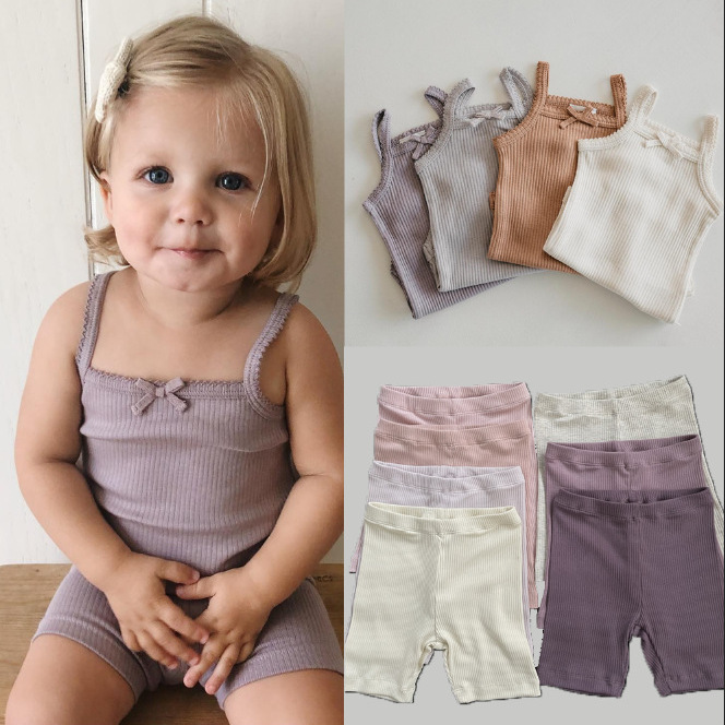24夏北歐風蘭精莫代爾棉超舒適女童寶寶女孩花邊吊帶背心騎行短褲