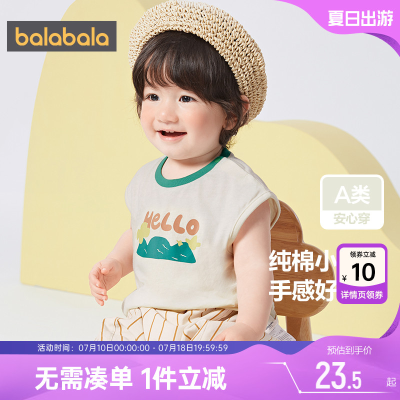 巴拉巴拉男童女童無袖背心t恤嬰兒寶寶純棉上衣夏季童裝男寶兒童