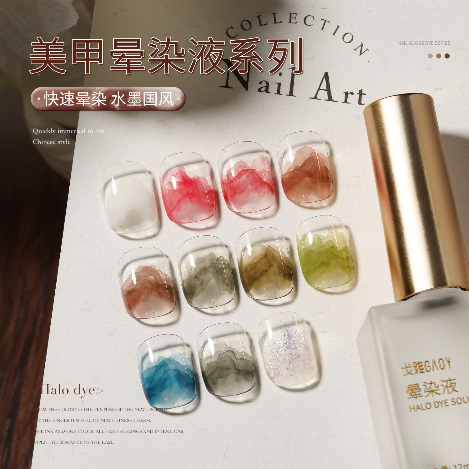 gaoy戈雅暈染液美甲店專用國風水墨大理石紋暈染膠漸變透明水彩液