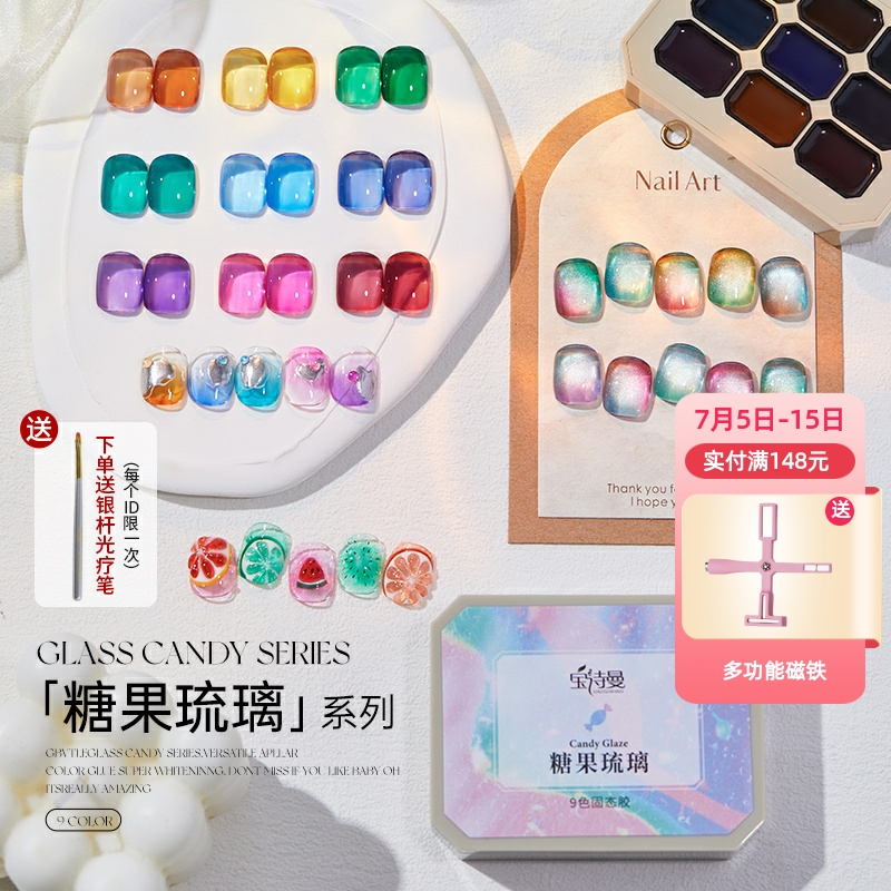 糖果琉璃美甲膠新款固態膠盤甲油膠九宮格套裝彩色拍拍膠美甲油膠