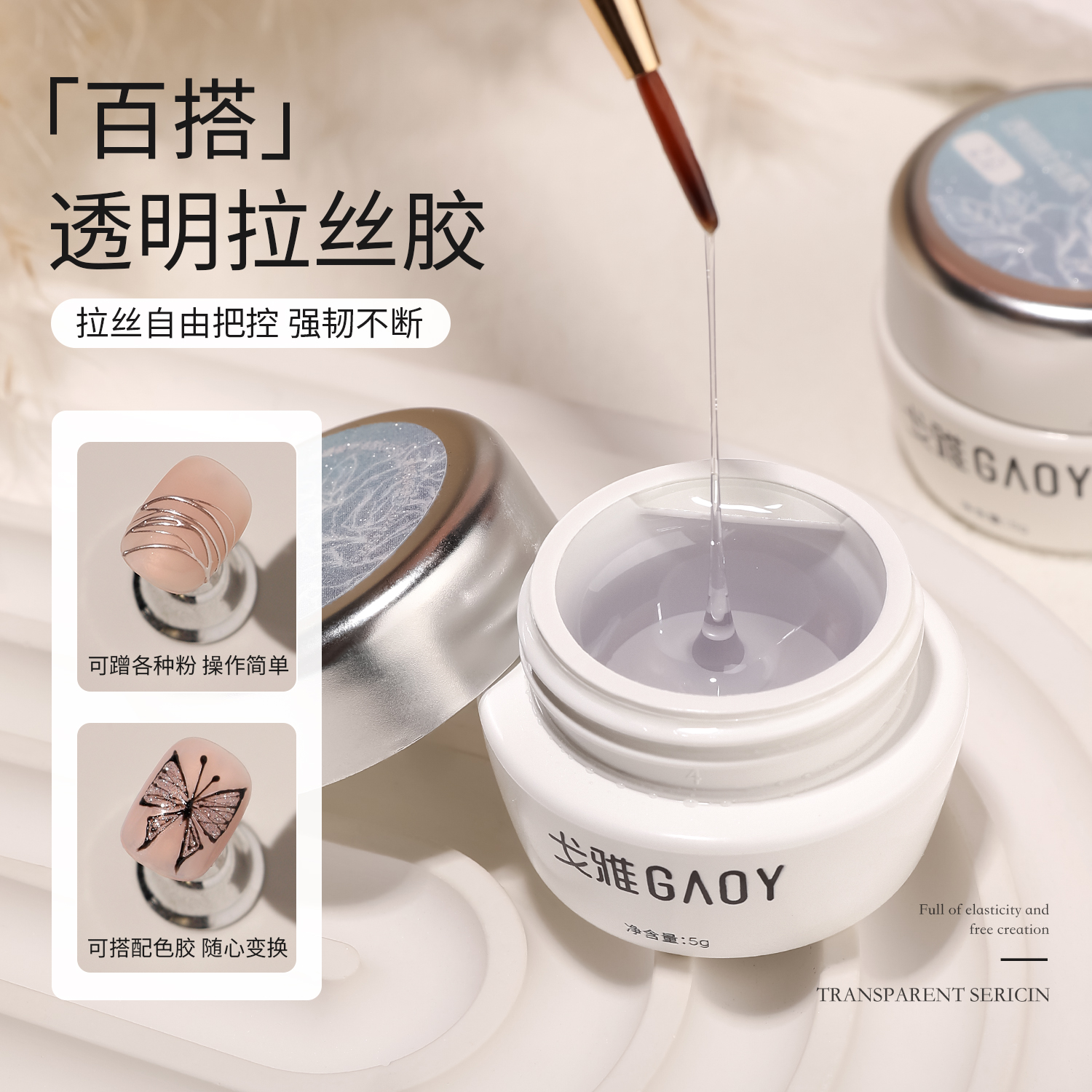 gaoy戈雅透明拉絲膠美甲店專用免洗彈力蠶絲彩繪膠蹭粉畫花拉線膠