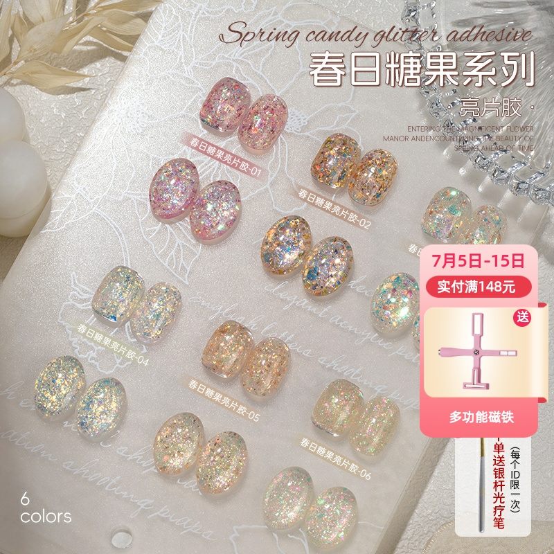 春日糖果亮片指甲油膠反光碎鉆超閃爆亮2025新款美甲店專用小套裝