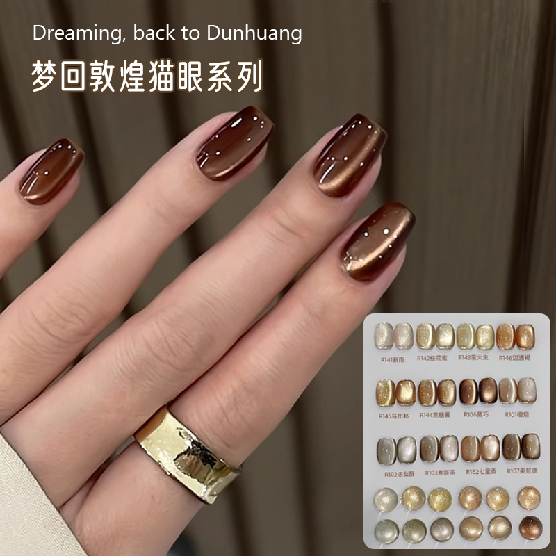 美甲貓眼甲油膠焦糖色棕咖色指甲油膠秋冬美拉德玻璃珠晶石貓眼膠