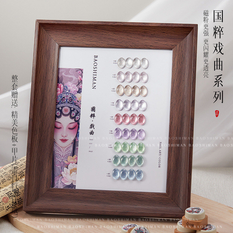 寶詩曼美甲國粹戲曲系列2025年新款貓眼爆閃冰透貓眼膠美甲店專用