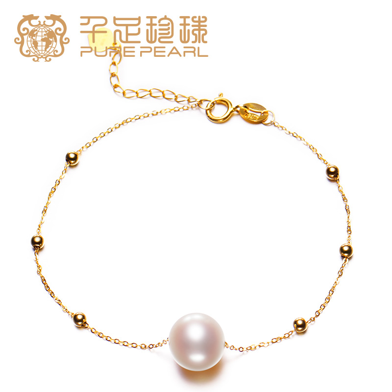 千足珠寶 祝歙 近圓基本光潔強光9-10mm 淡水珍珠925銀扣手鏈女