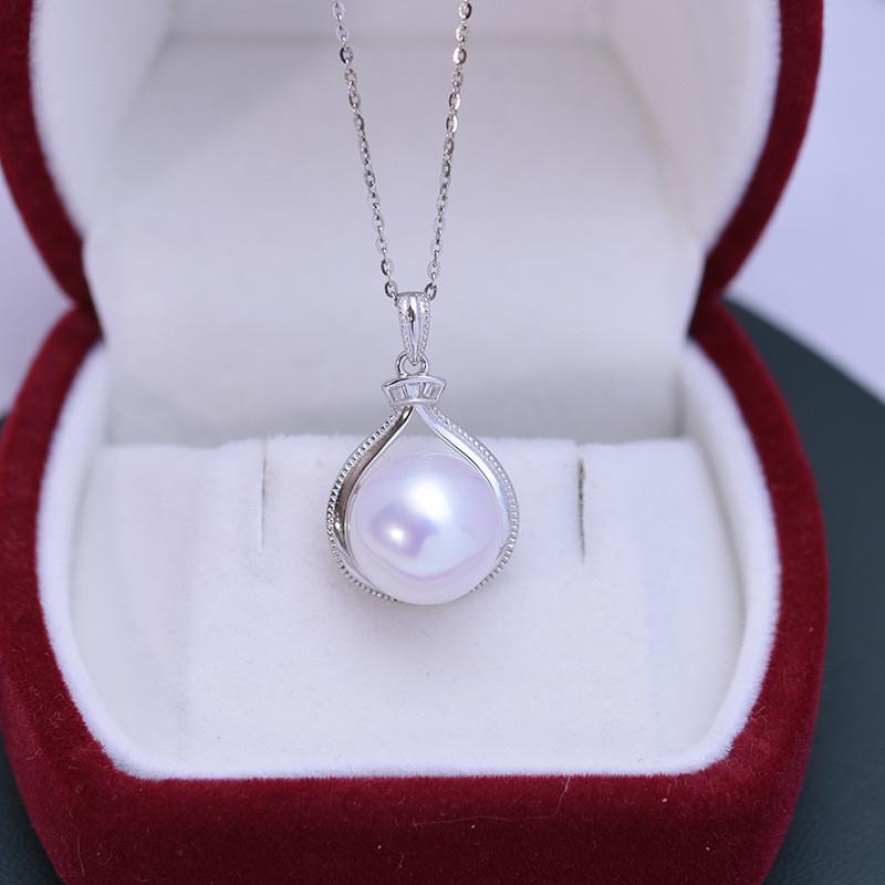 源頭工廠淡水珍珠11-12mm強光正圓扁圓S925銀女吊墜項鏈幾乎無暇