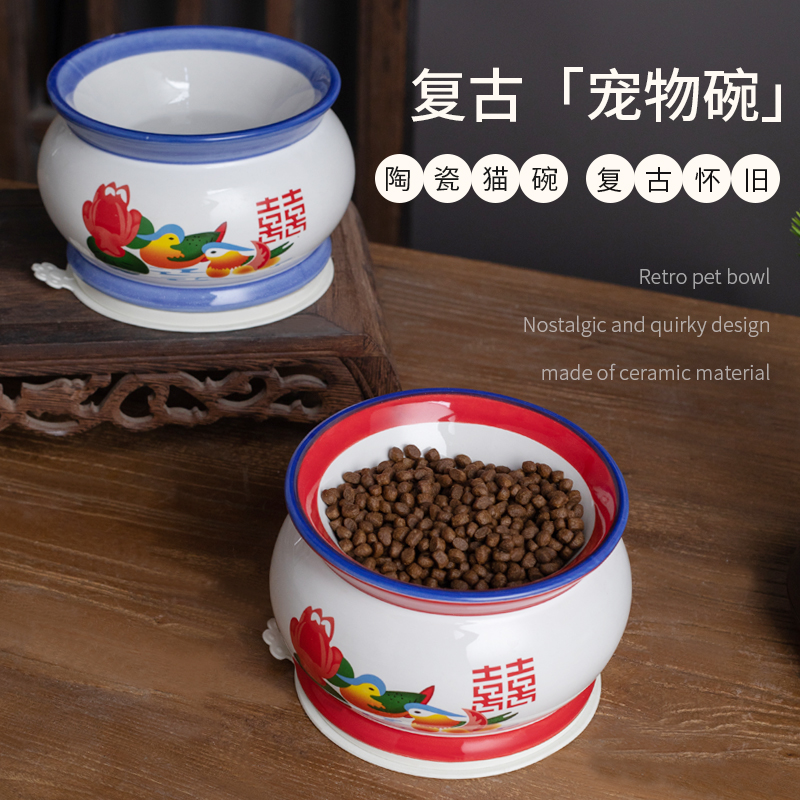 痰盂貓碗陶瓷高腳狗碗防打翻貓食盆水碗創意搞怪懷舊老式馬桶尿壺