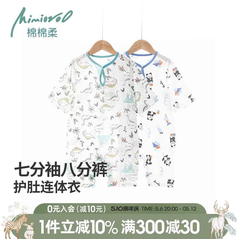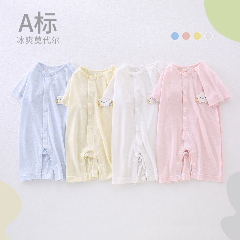 【莫代爾涼感】嬰幼兒a類連體衣夏季男女寶寶短袖薄款睡衣新生兒