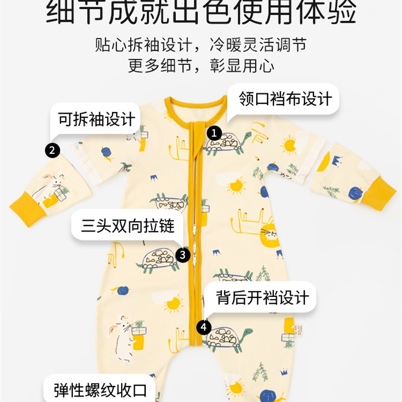 兒童連體睡衣秋冬雙層純棉保暖防踢被男寶寶女孩長袖可拆袖睡袋