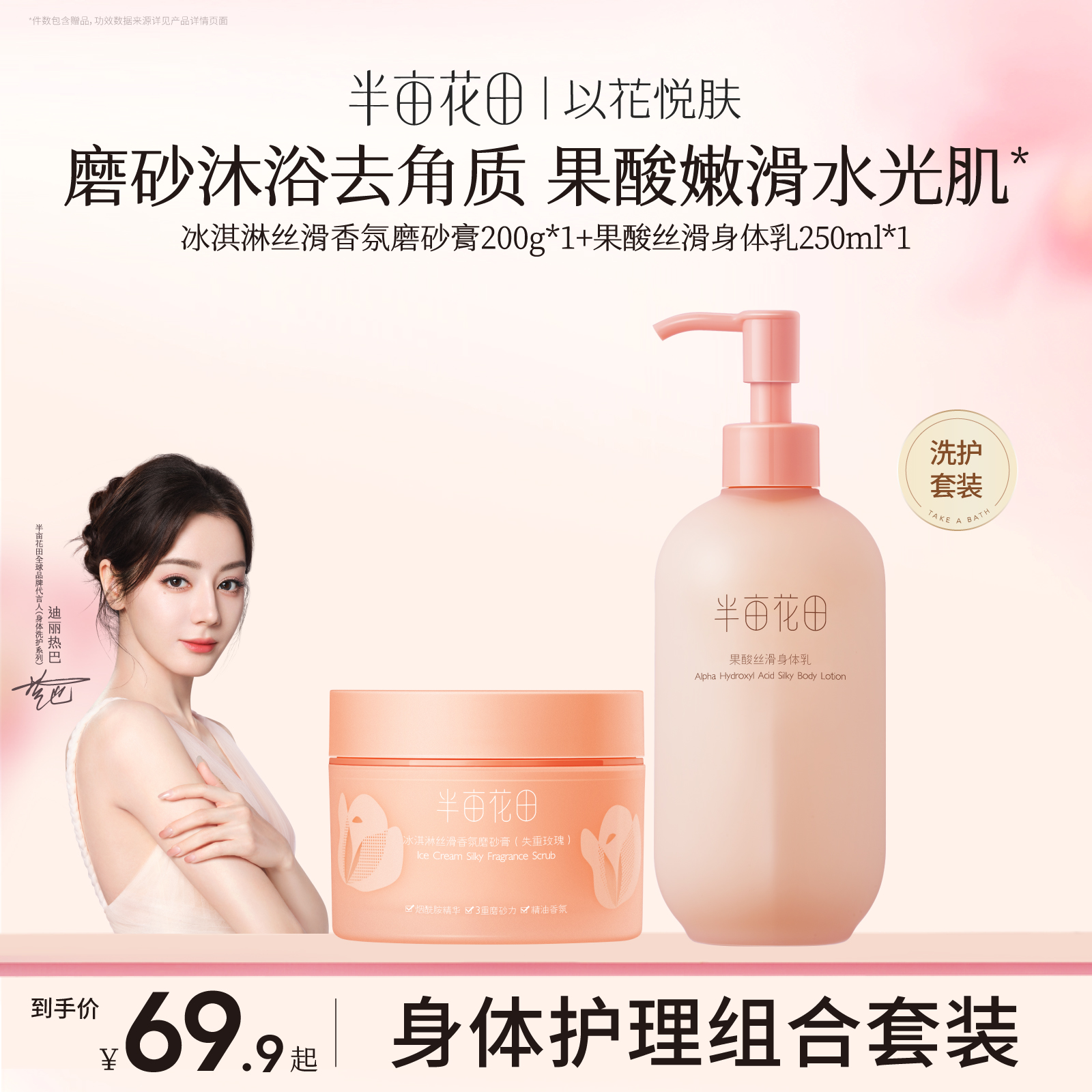 半畝花田冰淇淋身體磨砂膏去角質全身保濕果酸身體乳沐浴男女正品