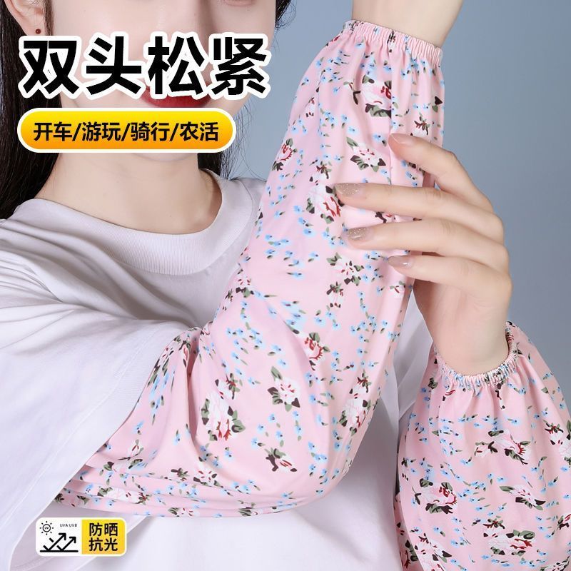 新款碎花冰絲冰袖女夏季彈力護手臂長款手袖干活騎車寬松大碼袖套