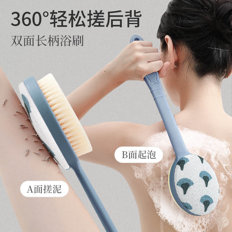 長柄軟毛雙面沐浴刷二合一洗澡搓背洗澡刷子搓澡神器不傷身搓澡巾