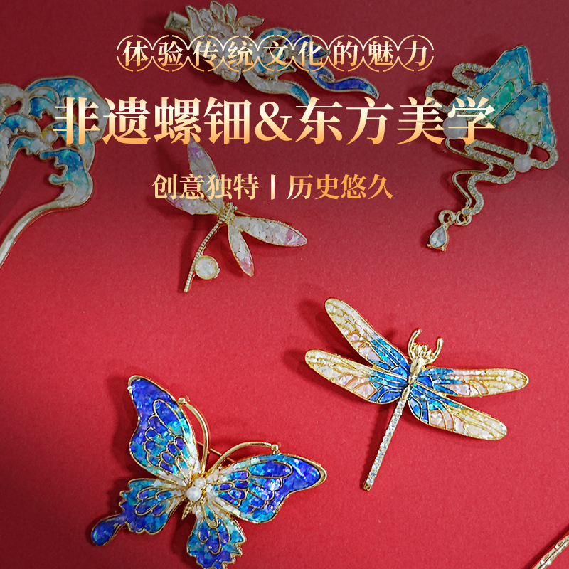 非遺螺鈿手工全套材料包diy創意胸針發簪貝殼手工技法團建活動