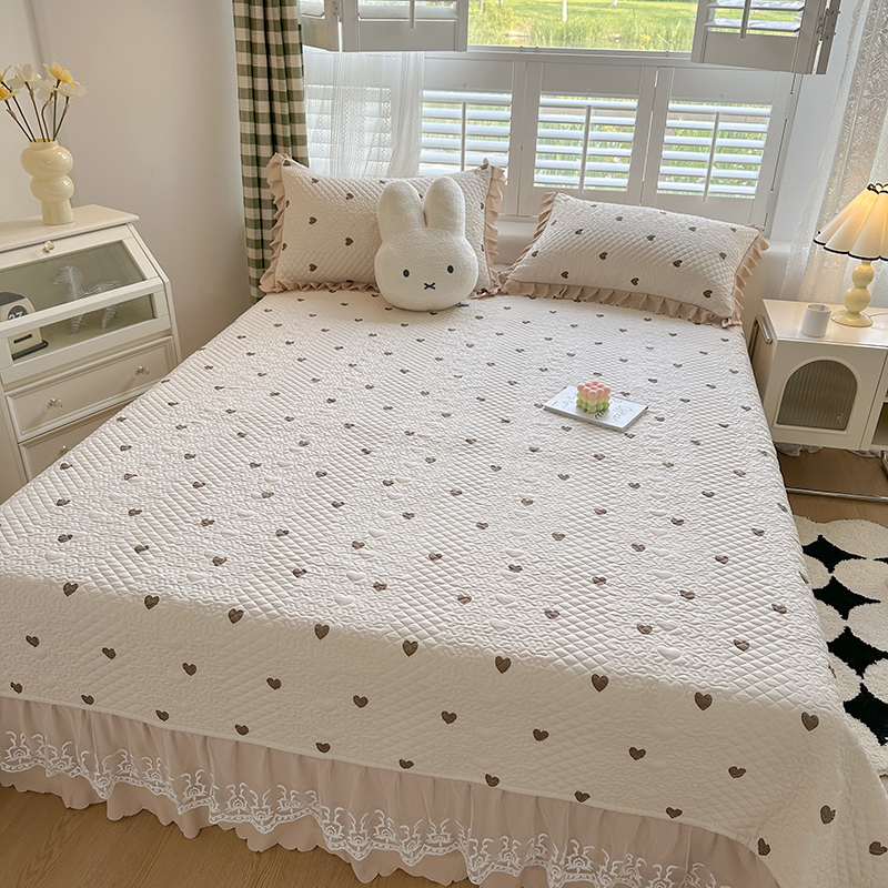 韓式全棉床蓋三件套純棉大炕蓋新款四季通用絎縫波點榻榻米床單件