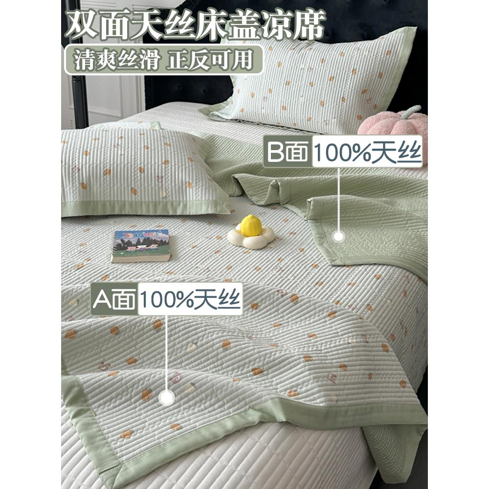 韓式雙面萊賽爾天絲床蓋三件套夏季絲滑涼爽防滑絎縫夾棉床單空調