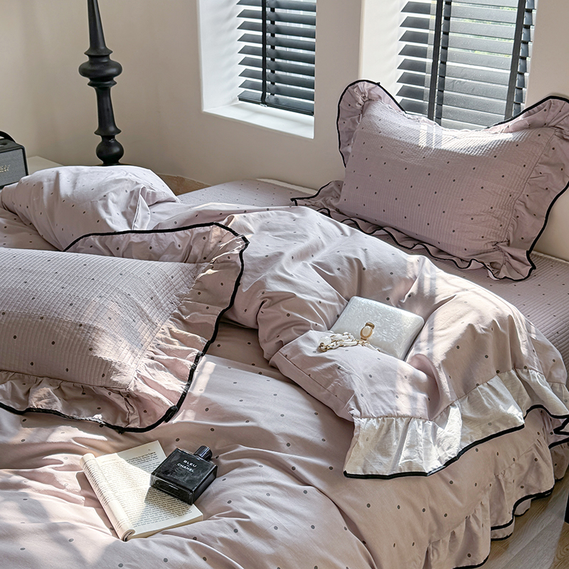 2025新款韓版全棉床蓋波點全棉床蓋四件套絎縫夾棉床蓋三件套四季