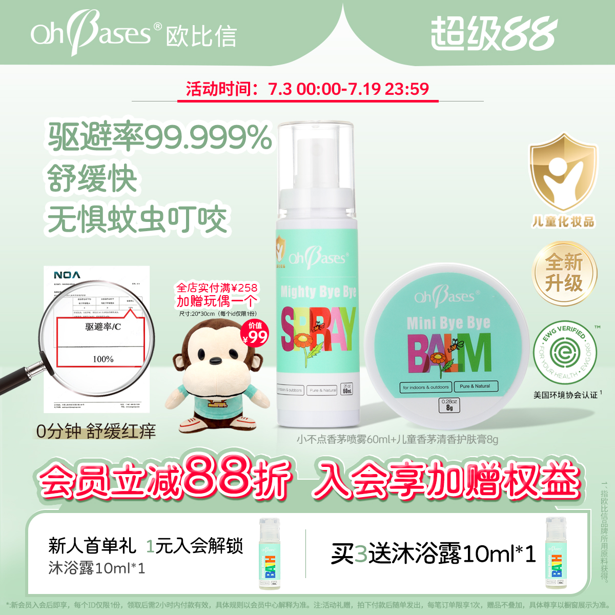 歐比信嬰兒童香茅止叮癢非紫草膏戶外消蚊舒緩止包防痱子叮咬噴霧