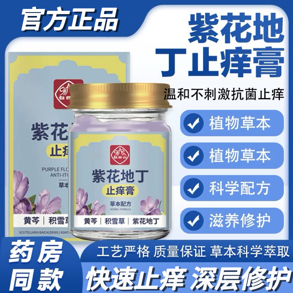 白云山紫花地丁藥膏正品草本止癢膏清涼抑菌全身止癢舒緩潤膚外用