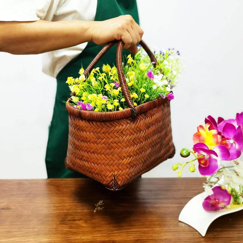 竹編籃子家用買菜籃手工竹編復古中式提手籃竹制品戶外購物籃