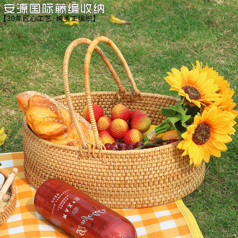 藤編織藤手提籃子家用買菜購物籃水果蔬菜藍水果采摘籃野外提藍