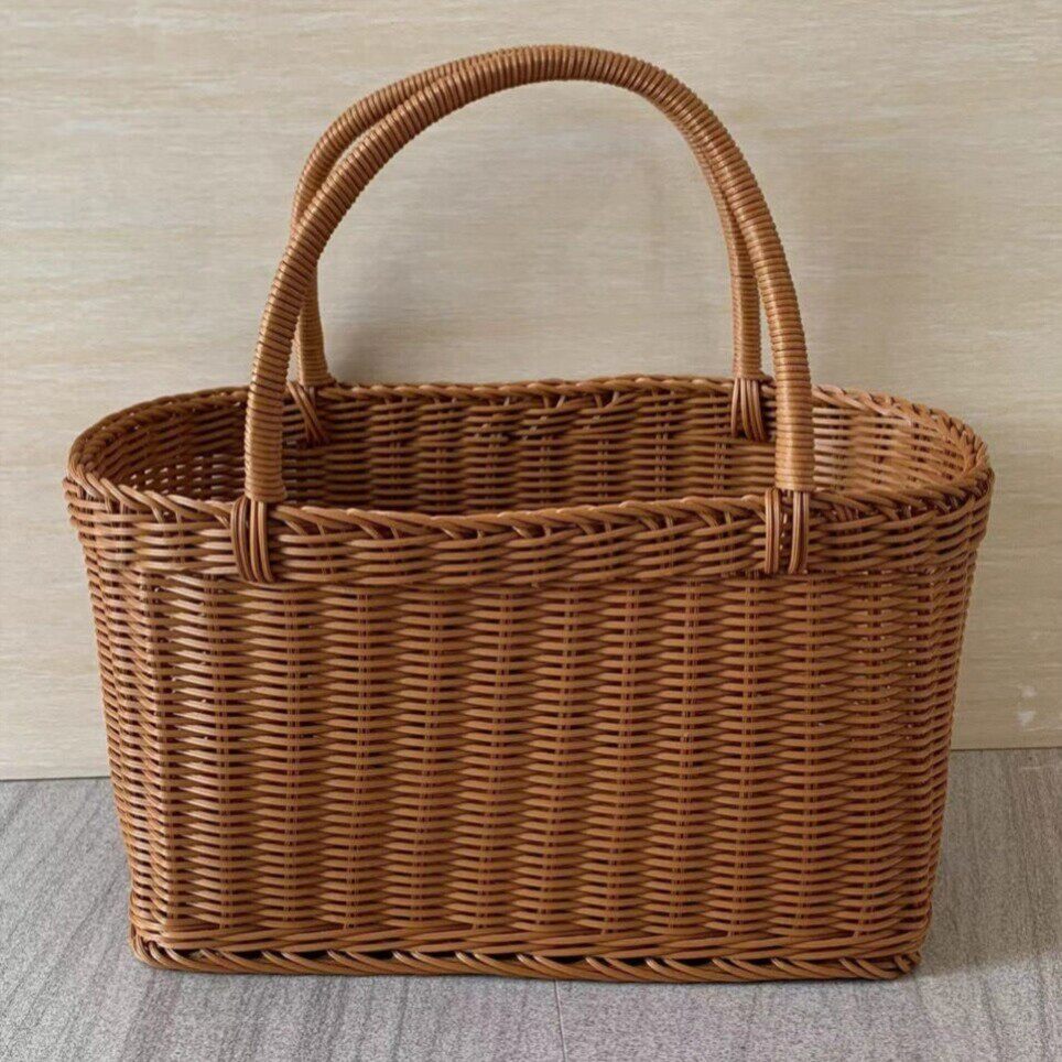 德產PP藤進口仿柳編仿藤編柳編藤編手提籃購物籃菜籃收納籃提手籃