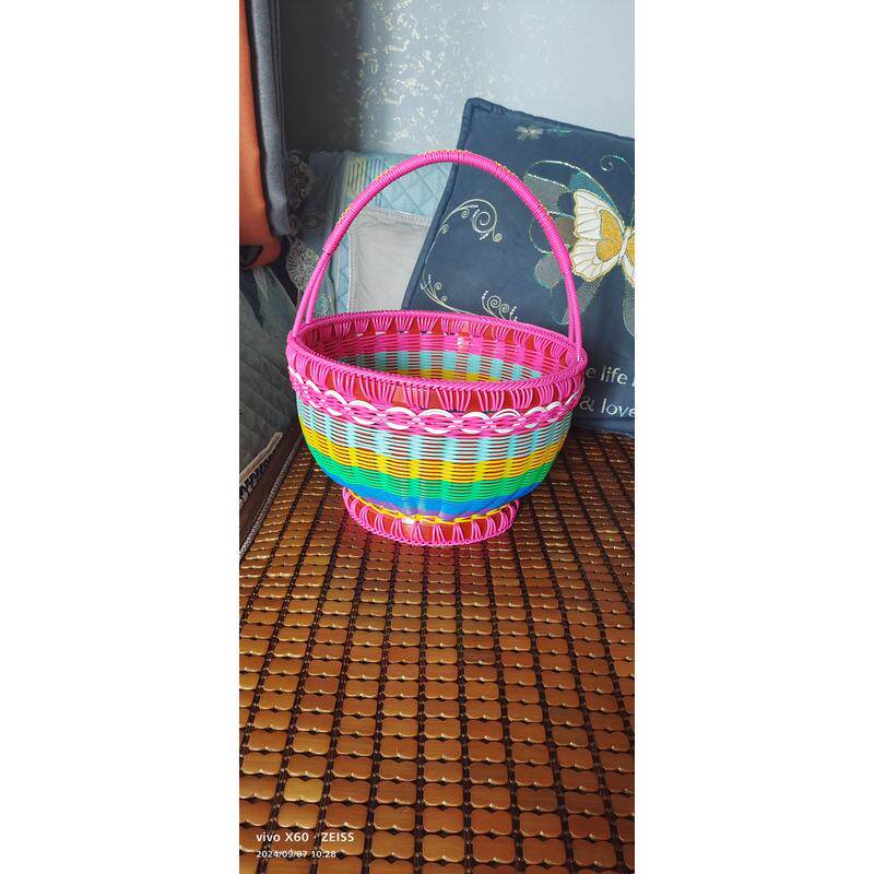 純手工編織藍子花籃手提藤籃買菜籃塑料大號藤條購物收納雞蛋吊