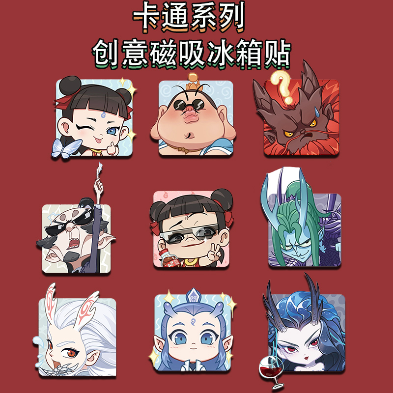新款哪吒之魔童鬧海周邊冰箱貼卡通國潮中國風裝飾貼磁力磁貼