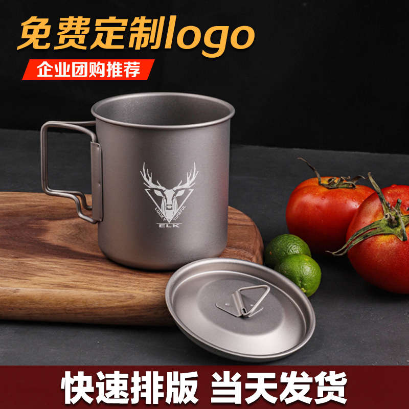 鈦杯純鈦戶外定制LOGO廣告露營折疊水杯帶蓋單層杯子套杯商用刻字