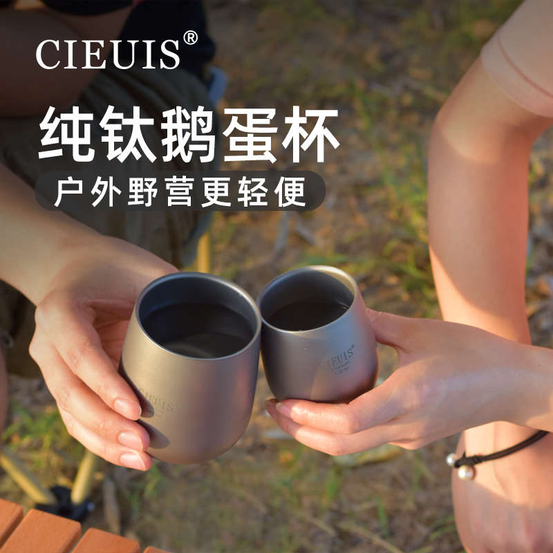 CIEUIS戶外純鈦杯雙層露營水杯鈦合金咖啡主人杯子鵝蛋小杯便攜式