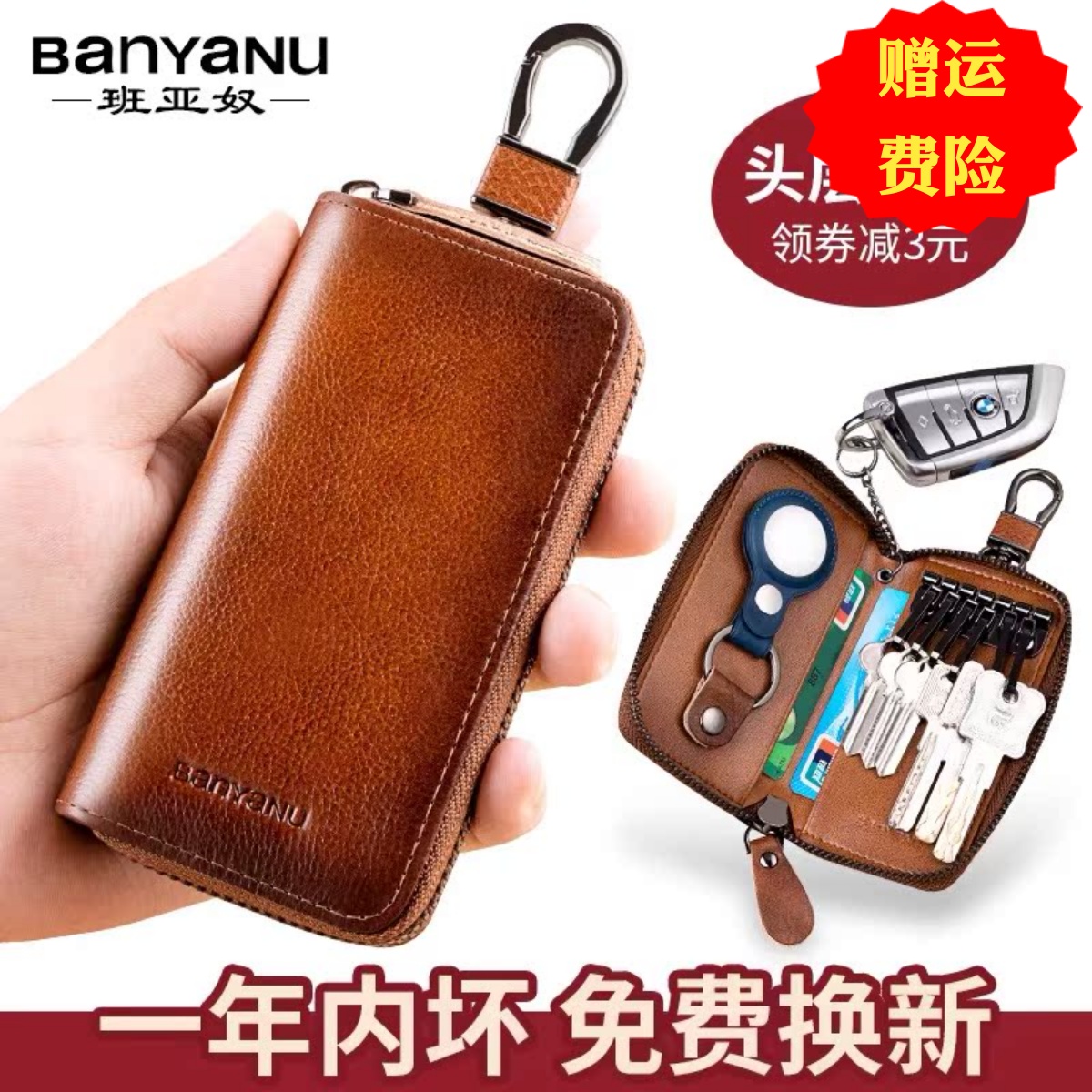 男士頭層牛皮鑰匙包真皮拉鏈鎖匙包大容量卡包女汽車多功能鎖匙扣