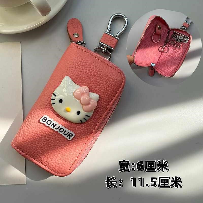 新款拉鏈汽車鑰匙包大容量真皮匙包卡包零錢包復古通用抽拉鑰匙包