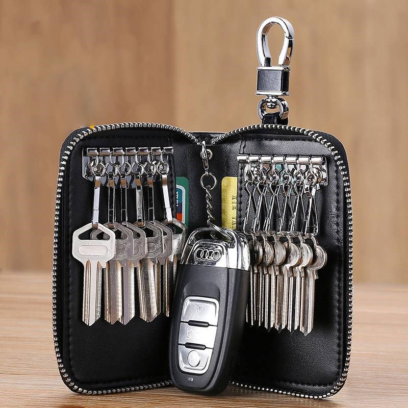 阿美咔嘰男款鑰匙包家用男士特厚真皮車鑰匙N通用收納包多功能腰