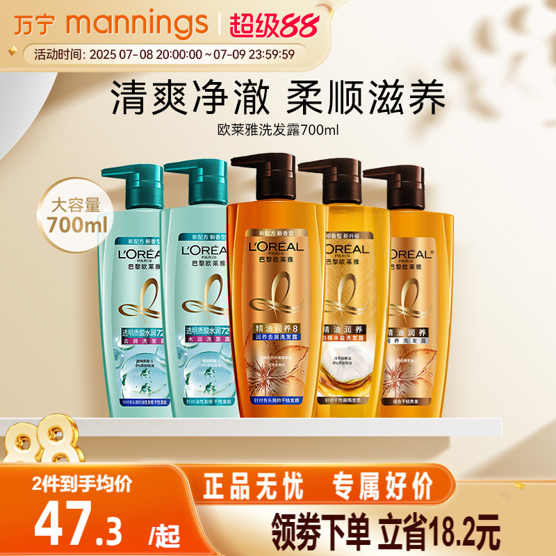 萬寧歐萊雅精油潤養洗發水700ml去屑控油去油舒緩清爽柔順洗發露