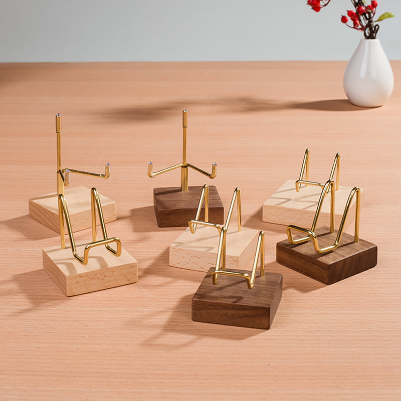 奇石黑胡桃木底座水晶吊墜黃銅展示架小型石頭托架小擺件礦石支架