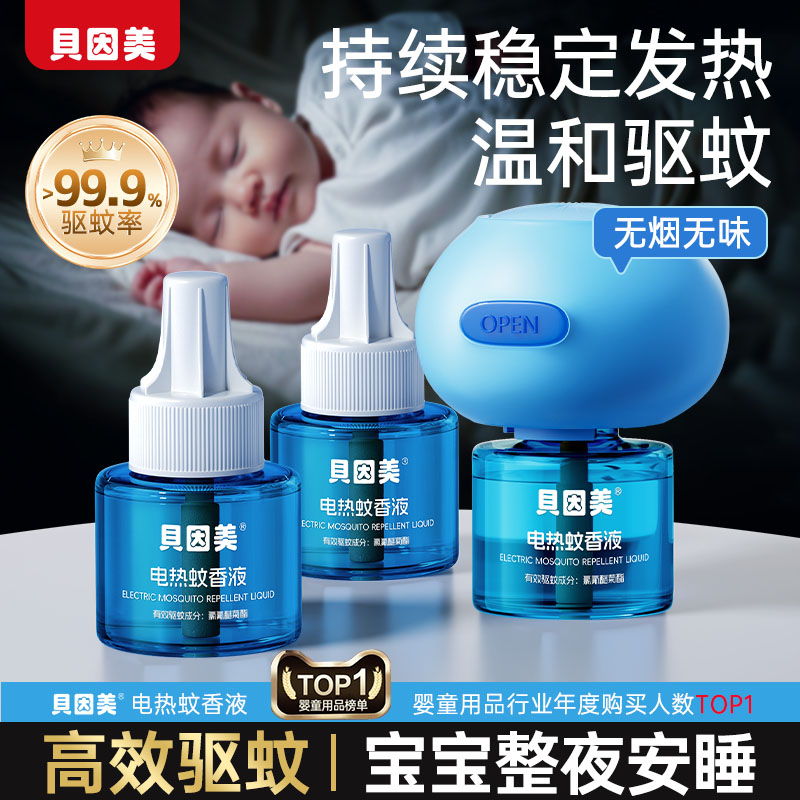 貝因美電熱驅蚊液插電蚊香補充液安全無味無避蚊胺寶寶孕嬰適用