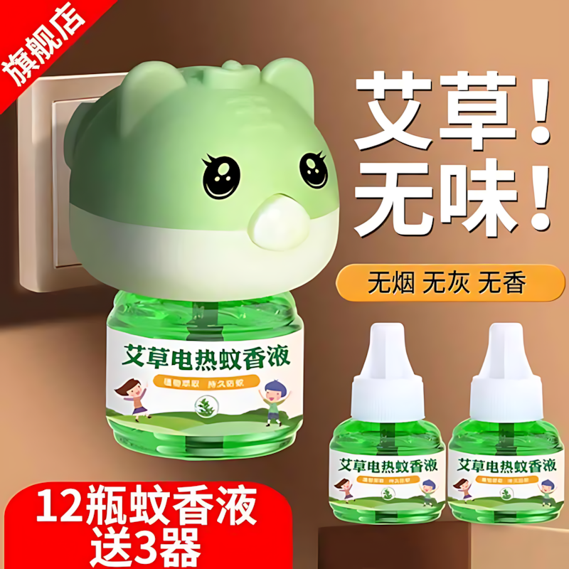 艾草電熱蚊香液無味家用驅蚊液插電式專用補充液驅滅蚊防蚊用神器