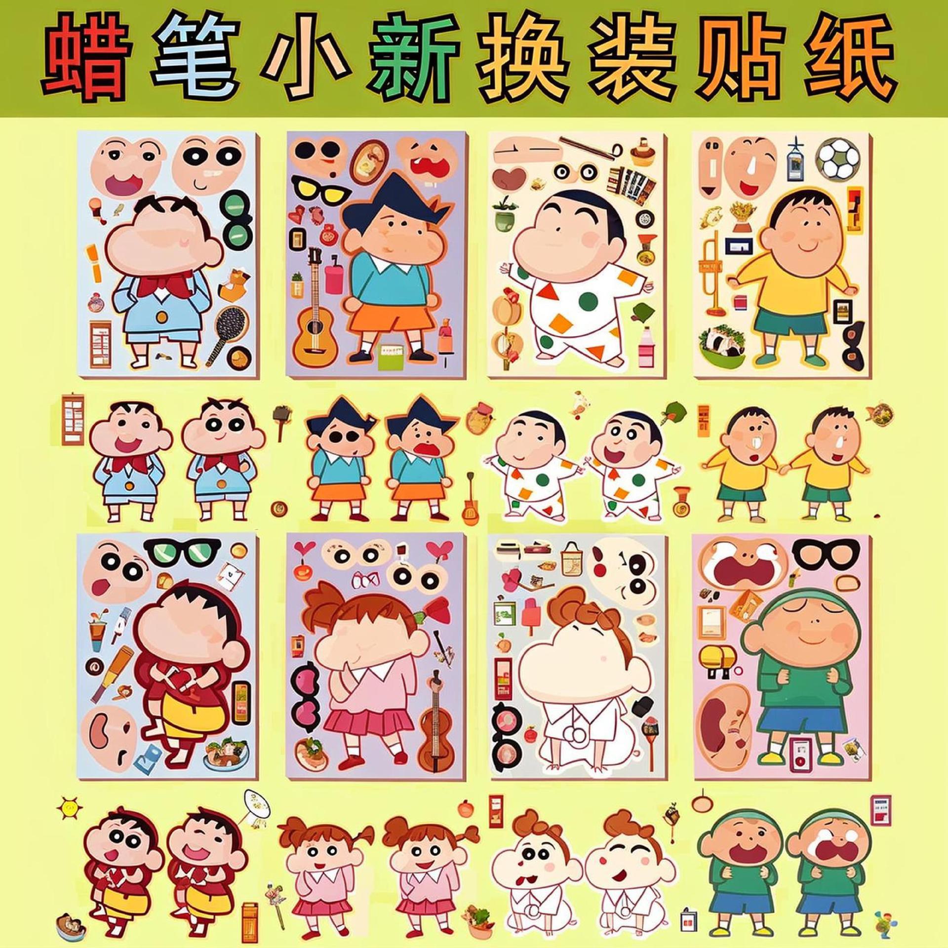 蠟筆小新換裝爆款貼紙DIY卡通變裝組合兒童女益智手工創意玩具