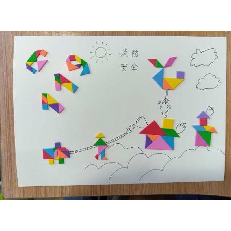 七巧板貼紙貼畫 消防安全貼畫 安全學習手抄報 適合A4和4k紙上貼