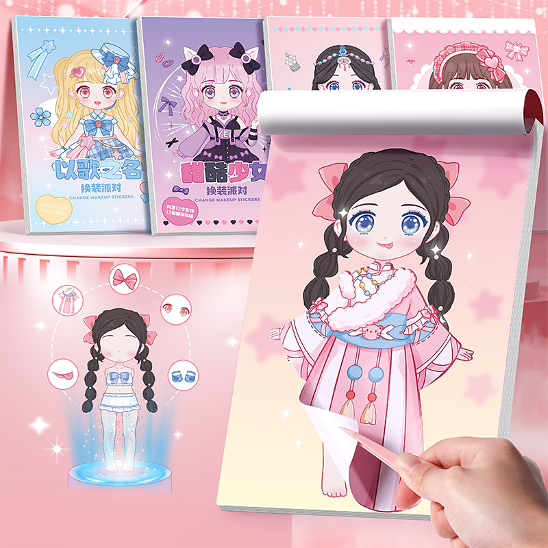 少女公主換裝本美甲店美容店安y靜書免裁剪貼紙涂色本diy女孩玩具