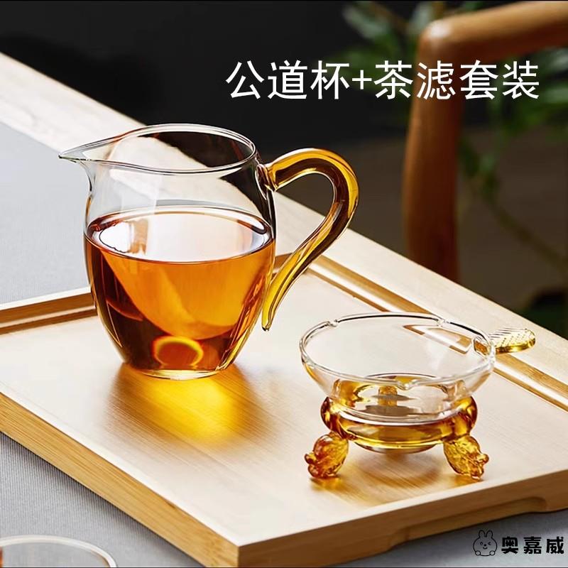 茶本堂公道杯茶漏分茶器茶具茶海公杯加厚耐熱彩把玻璃大號均公杯